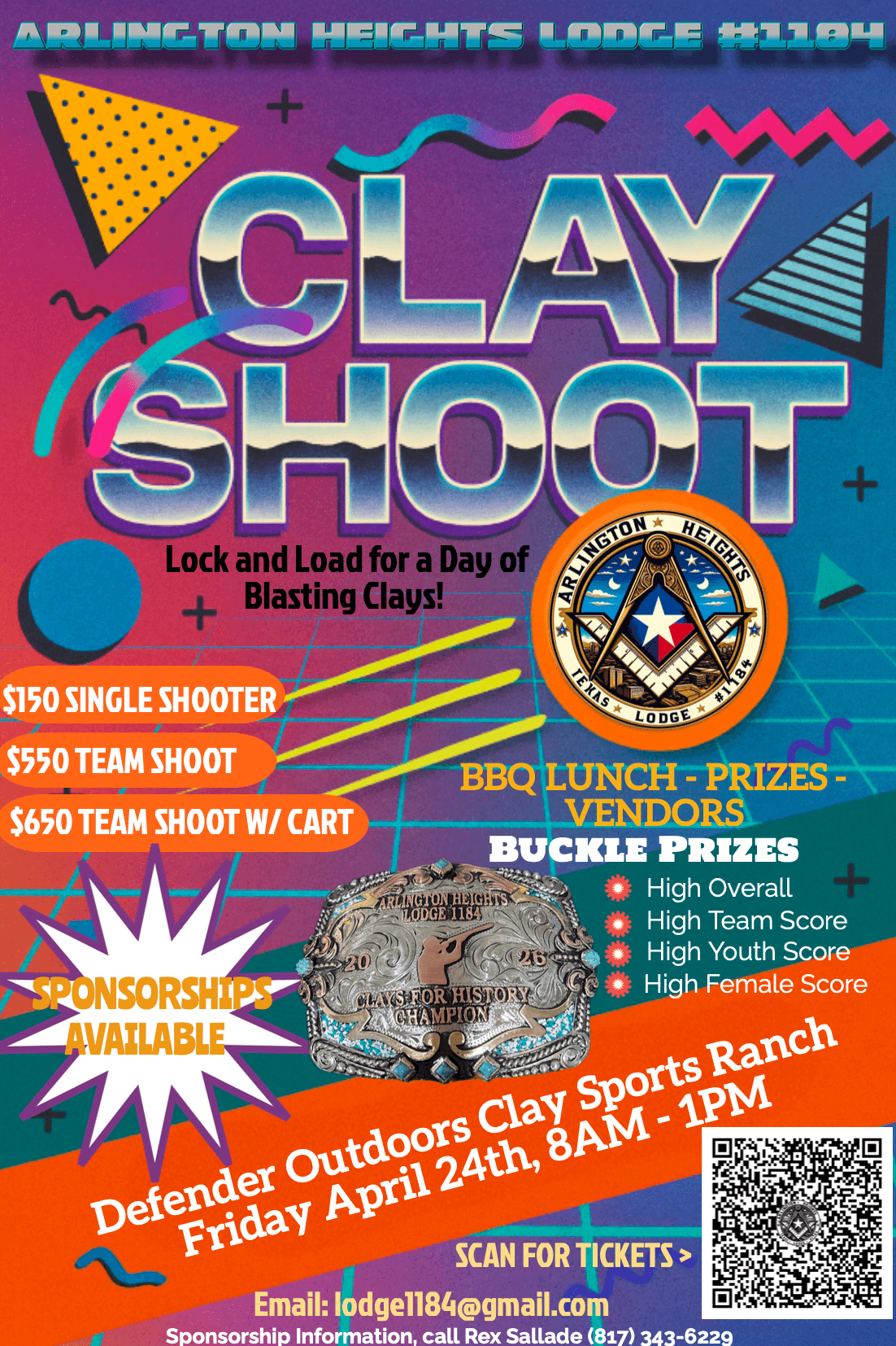 *SPONSORSHIP INFORMATION, CONTACT REX SALLADE (817) 343-6229* 2nd Annual Arlington Heights Masonic Lodge #1184 Clay Shoot Fundraiser Join us for our Second Annual Clay Shoot at Defender Outdoors Ranch in […]