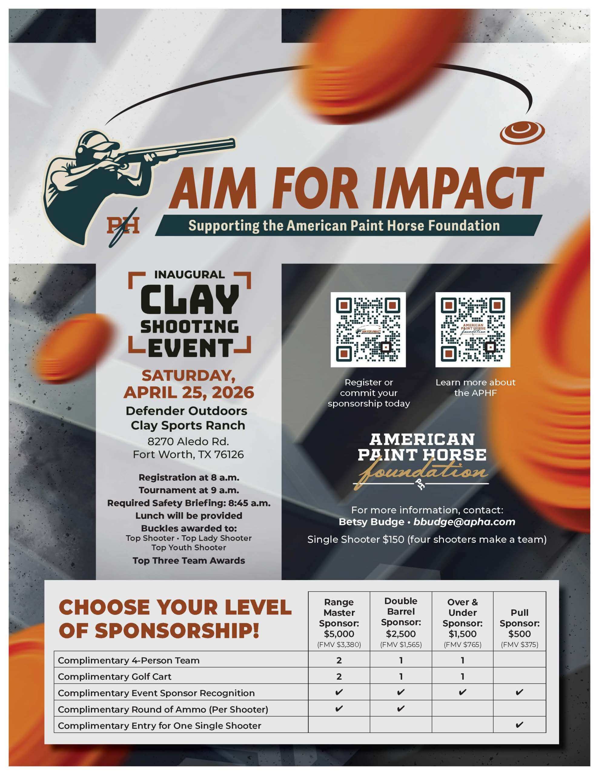 Take sight on making a meaningful difference by supporting the American Paint Horse Foundation’s Aim for Impact Clay Shoot. The inaugural event takes place April 25, 2026, at Defender Outdoors […]