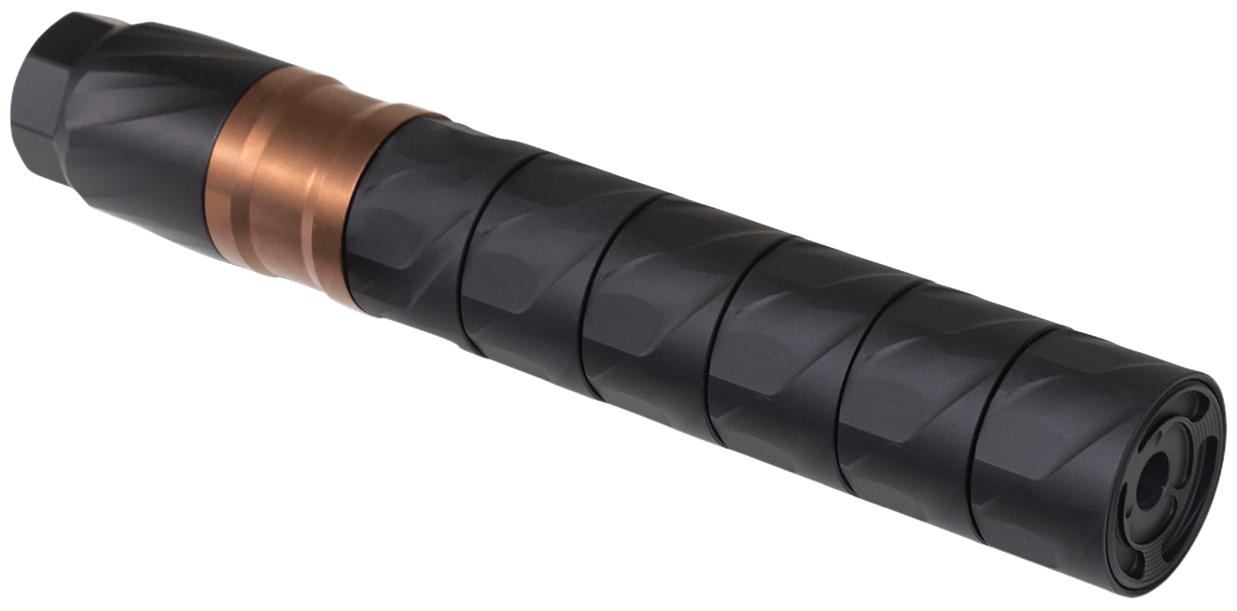 ODIN Works first .22 LR suppressor the NAV .22 will enhance your rimfire experience. Engineered with heat treated stainless steel and 7075 hard anodized aluminum the NAV .22 is the perfect combination of weight and strength. After the ODIN Works engineering dept tirelessly tested designs and configurations to find what truly worked best the modular NAV .22 was born. Weighing a mere 2.3 ounces in the short configuration and only 4 ounces in the full configuration you likely wont even know its on your gun. With dB ratings for rifle at 113 and pistol at 119 the NAV .22 will outperform almost anything on the market. The ODIN Works NAV .22 is the epitome of affordable quality.